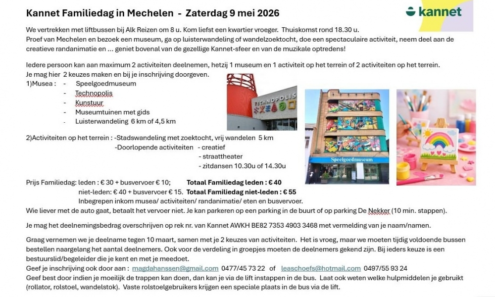 Vertrek in Alken, met de liftbus naar Mechelen voor een ganse dag amusement.
