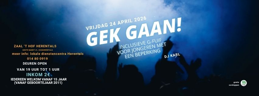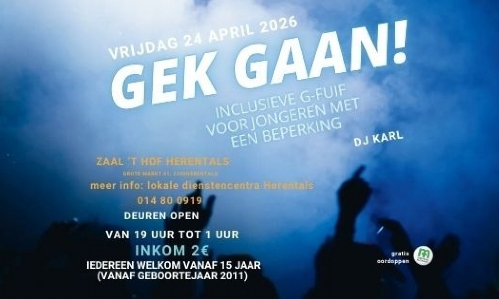Op vrijdag 24 april organiseert het OPH (Overleg voor Personen met een Handicap) in Herentals een spetterende G-fuif! Een avond vol muziek, sfeer en ontmoeting waar iedereen van harte welkom is.